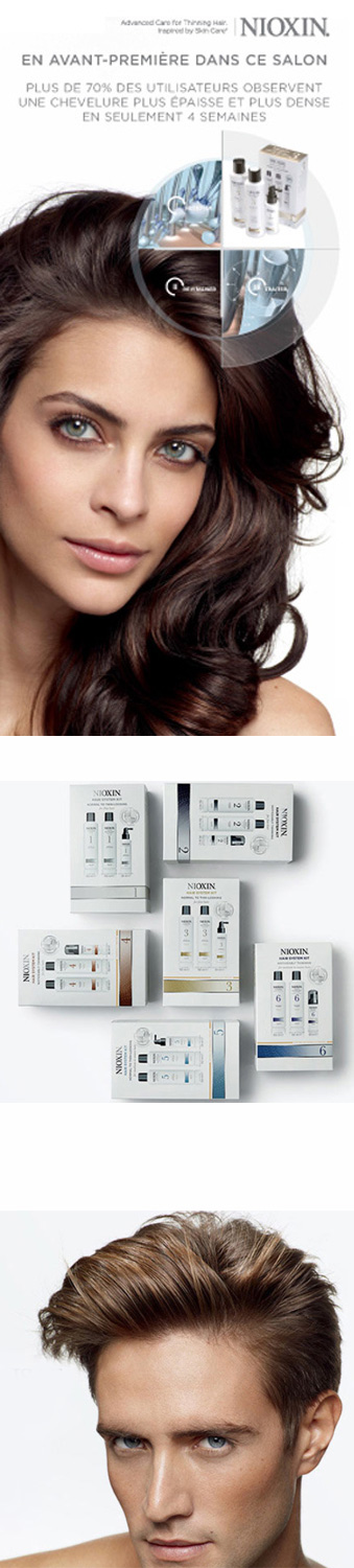 Nioxin est une marque spécialisée dans les produits capillaires destinés à traiter et à améliorer la santé des cheveux fins, clairsemés et sujets à l’amincissement. La marque se concentre sur le concept de la « dermo-cosmétique » en fournissant des solutions qui prennent en compte à la fois le cuir chevelu et les cheveux.